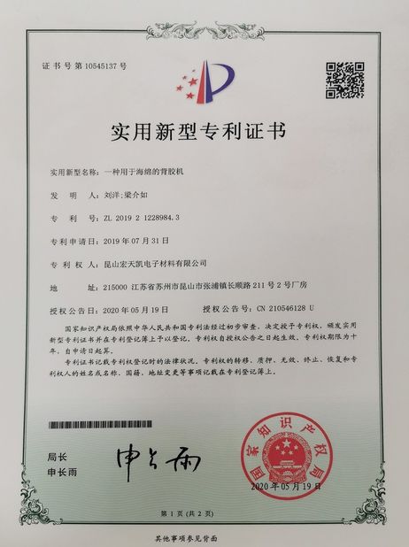 Standar:Utility model patent certificate Nomor:ZL 2019 2 1228349.5 Masalah tanggal:2020-05-19 Lingkup/Range:A die cutting machine Dikeluarkan oleh:State Intellectual Property Office |